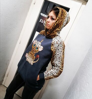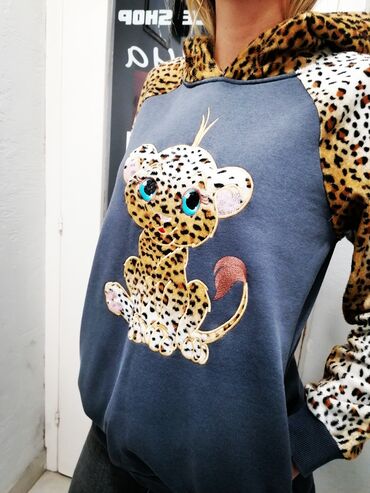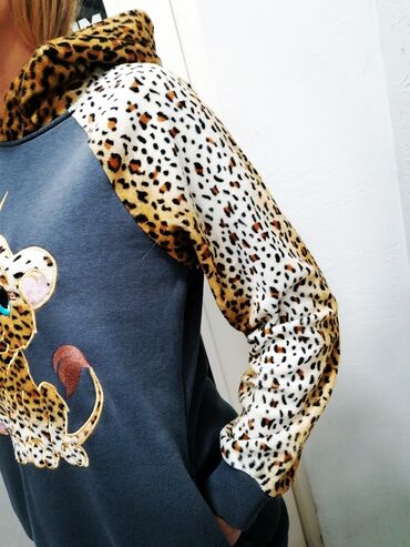 Miss Sixty - Ženska dukserica/džemper sa leopard printom, vel s - Boja: siva osnova sa crnim leopard šarama (gradijent ka sredini) - Model: opušten, šišmiš rukavi, spuštena ramena - Ogrlica: širok...