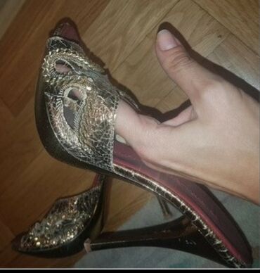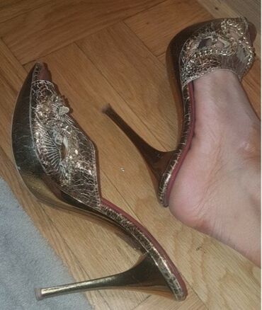 37Primadonna collection papuce sa visokom stiklom. Broj 37, moze i 36,5 Zlatne neobicne .. Boja starog zlata.. kao nove, fabricki ispucale, tako su kupljene, to je fora.