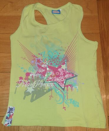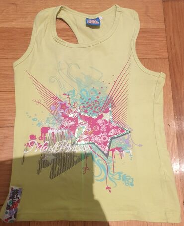 Princess zelena majica sa aplikacijom i sljokicama. Za 7-8 godina, rasteze se. Na bretele, slatka, uzeli smo je u Dubaiju, za njihovo tržiste je.