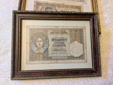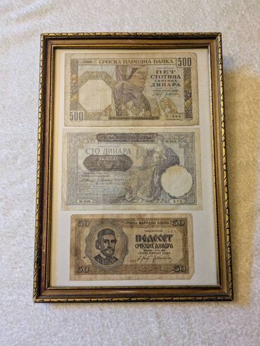 Prodajem kolekciju originalnih papirnih novčanica Srpske narodne banke iz prve polovine 20. veka, pažljivo uokvirenih i sačuvanih u odličnom dekorativnom stanju. Ramovi su takođe starinski.