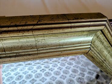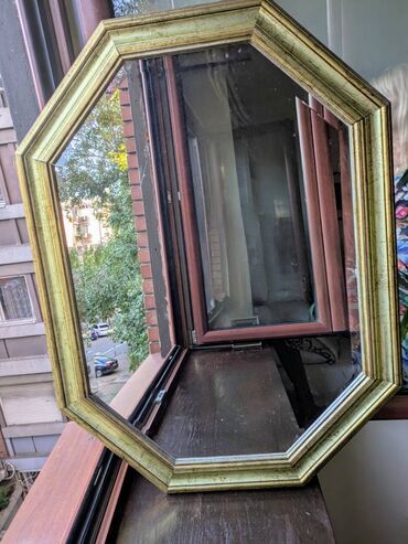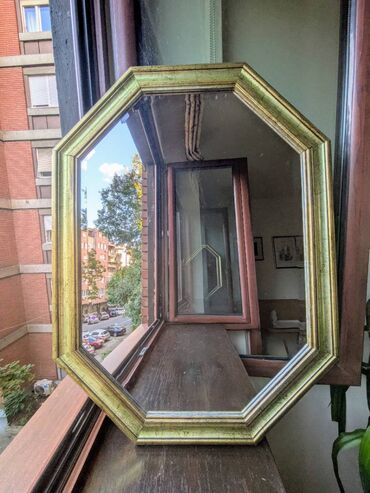 Pokupiti na licu mestaProdajem ogledalo dimenzija 60x80 cm, sa dekorativnim osmostranim ramom širine 6,5 cm. Staklo sa blago oborenim ivicama daje elegantan izgled, a pozlata na ramu ima patinu koja odražava autentičnost i stil prošlih vremena. Ogledalo je očuvano i spremno za upotrebu – idealno za enterijere u klasičnom, vintage ili art-deco stilu.