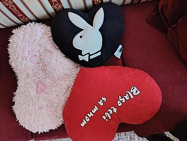 Prodajem set od 3 dekorativna jastučića u obliku srca i 10 plišanih