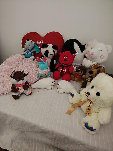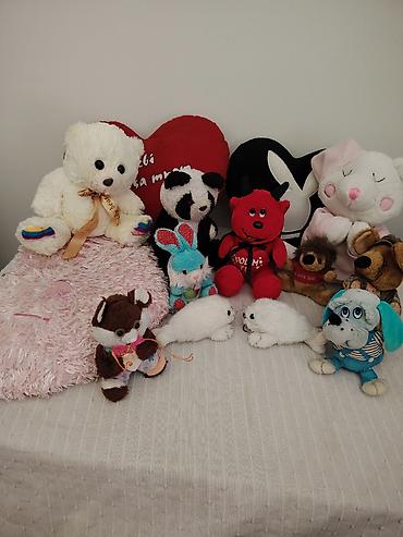 Prodajem set od 3 dekorativna jastučića u obliku srca i 10 plišanih igračaka . Sve očuvano i čisto. Ide u kompletu po povoljnoj ceni, idealno za poklon ili dečiju sobu, sofu/fotelju. Mekani, sa kvalitetnim punjenjem koje lepo zadržava oblik.Možete ih koristiti kao dekoraciju, kao foto rekvizit ili ih pokloniti posebnoj osobi. Plišane igračke su kvalitetne i mekane. Na fotografijama vidite da su različitih veličina. Najmanja je 15 cm a najveća 40. Odlična prilika da dobijete sve po jednoj ceni.