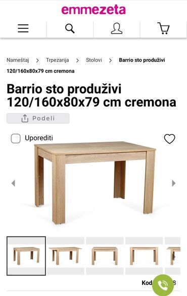 - Dimenzije: dužina 120 cm (rastegljiv na 160 cm), širina 80 cm, visina 79 cm.
