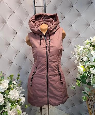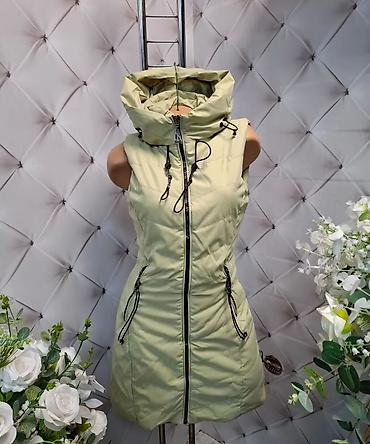 Ženska dugačka pufna prsluk-haljina sa kapuljačom - Model: duga, prošivena prsluk jakna bez rukava - Materijal: sjajna vodoodbojna tkanina spolja; mekana topla postava - Punjenje: lagano, toplo (p...