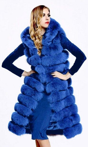 Dugi prsluk od prirodnog krzna (srneća dlaka), veličina S. - Model: dugačak prsluk bez rukava - Zatvaranje: rajsferšlus po celoj dužini - Postava: glatka satenska podstava u bež nijansi - Kroj: bl...