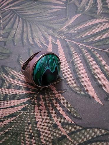 Prsten sa zelenim kamenom (malahit stil) - Materijal prstena: metal u