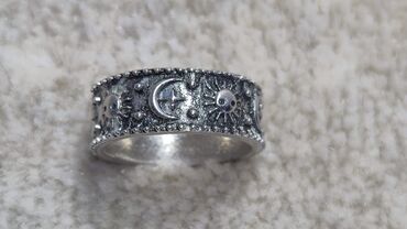 Srebrni prsten sa talasastim/zig-zag dizajnom - Materijal: srebro (vidljiv žig na unutrašnjoj strani obruča) - Boja: sjajno srebro - Dizajn: minimalistički, sa centralnim talasastim segmentom koji...