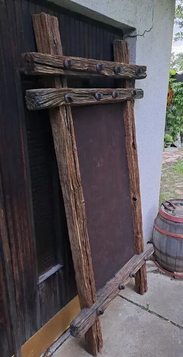 Pokupiti na licu mestaRam od starih greda izvadjenih iz Dunava i starih zeleznickih klinova. Ukupna dimenzija 200x100cm.