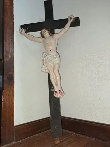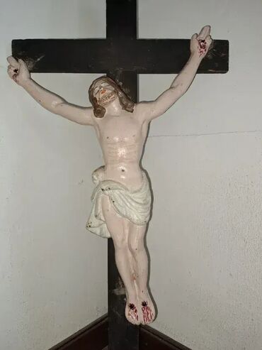 Pokupiti na licu mestaRaspece od livenog gvozdja na drvenom krstu, visina same figure 40cm. Dosta staro i masivno.