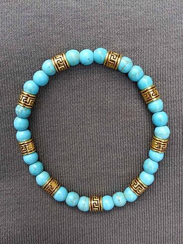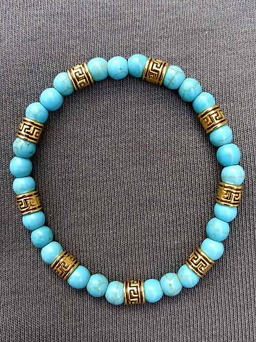 - Materijal: tirkiz (poludragi kamen) sa dekorativnim zlatno-toniranim distancerima