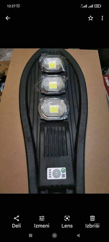 Solarni LED Reflektor za ulicnu ili dvorisnu rasvetu 345w. Boja svetlosti hladno bela 6000K. Svetiljka opremljena sa senzorom dan - noc koji omucava da se lampa aktivira i u tamno doba dana. Ima integrisan solarni panel na svojoj poleđini i senzor Dan/Noć sa prednje straneNema kablova niti povezivanje na električnu mrežu. Normalan rad na 30% snage , sa prolaskom ljudi u zoni senzora pojacava se svetlost u zavisnosti od frekvencije prolaska. + DALJINSKI ZA PODESAVANJEVreme punjenja od 6 do 8 sati u zavisnosti od intenziteta osvetljenja. Vreme koliko moze da svetli 8-10h , u zavisnosti od intenziteta svetla. Motaza na cev fi: 40-50mmDaljinskim upravljacem odredjujete da li da reflektor svetli 8h ili cele noci , da li da svetli punom jacinom svetla ili sa 30% snage.