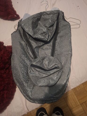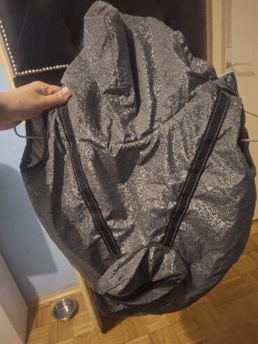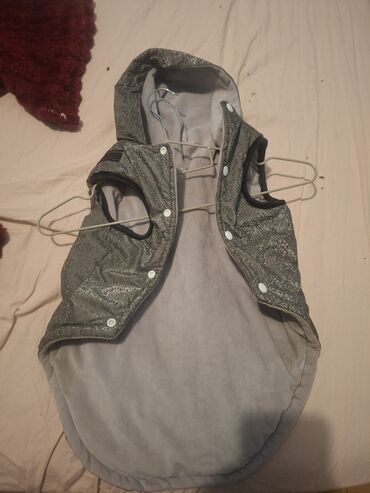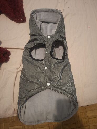 - Materijal: spolja vodoodbojna, svetlucava/reflektujuća tkanina u sivoj boji; iznutra mekana flis postava za toplotu i udobnost.