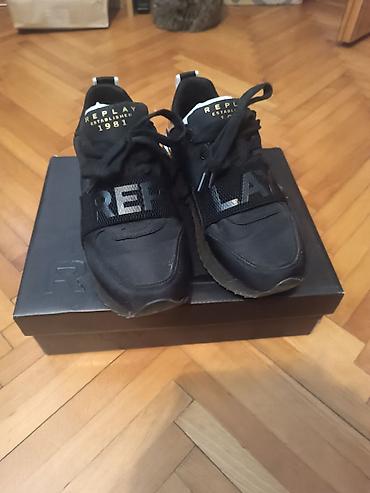 - Dizajn: elastična traka sa ispisom REPLAY preko risa, klasično pertlanje