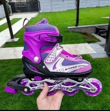 Inlajn roleri za decu/teen – model „My Skates“ (boja: crno‑belo‑ljubičasta). - Tvrda školjka sa mekim unutrašnjim uloškom za stabilnost i udobnost - Sistem zakopčavanja: mikro kopča na zglobu, čič...