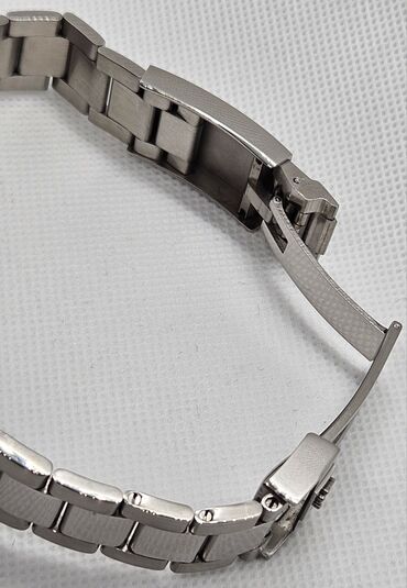 Uniseks ručni sat sa kvarcnim mehanizmom. Srebrne je boje, sa okruglim kućištem koje je ukrašeno detaljima nalik na cirkone oko brojčanika. Brojčanik je svetle boje, sa jasno označenim brojevima 12...
