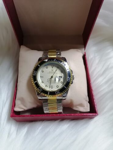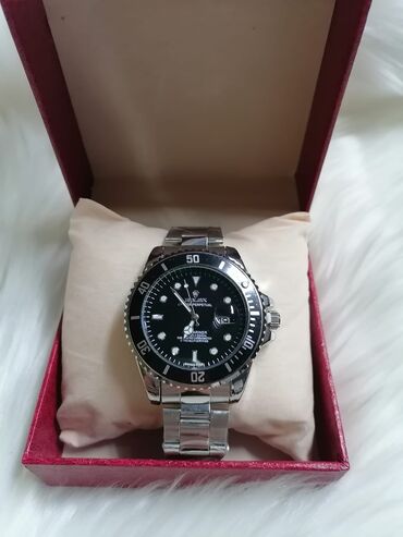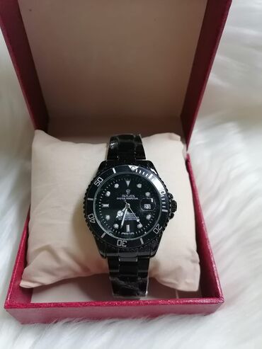 Uniseks ručni sat sa kvarcnim mehanizmom. Srebrne je boje, sa okruglim kućištem koje je ukrašeno detaljima nalik na cirkone oko brojčanika. Brojčanik je svetle boje, sa jasno označenim brojevima 12...