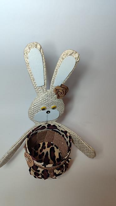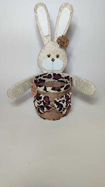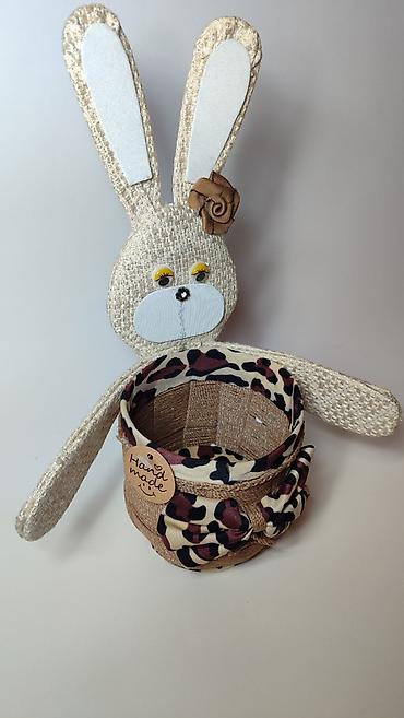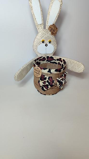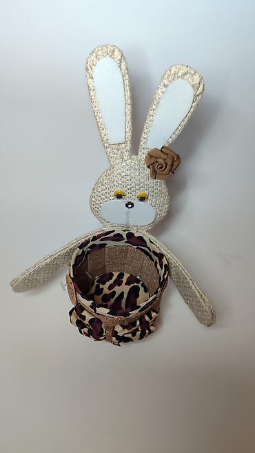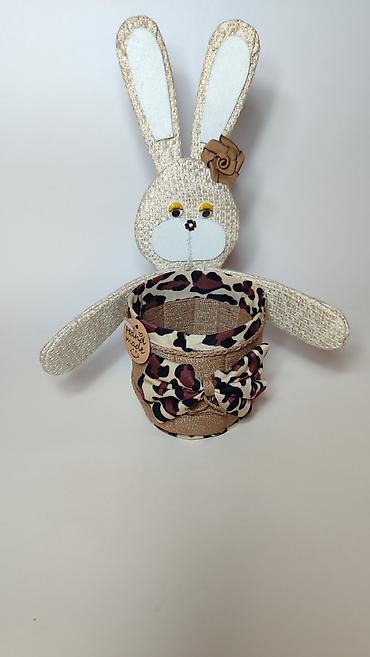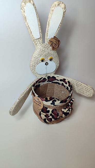 - Unikatna korpica sa glavom i ušima zeke, izrađena od jutane trake i tekstila.