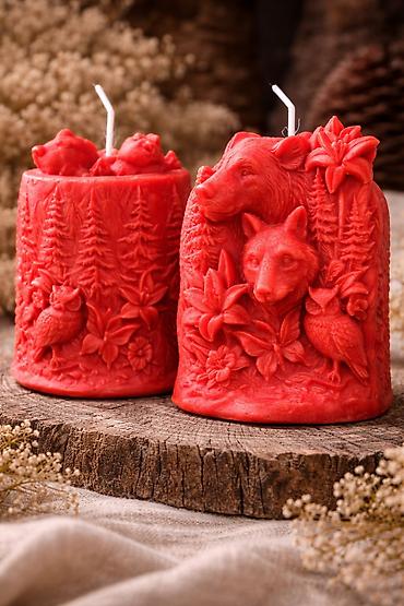 Ručne dekorativne sveće sa šumskim reljefom - Materijal: vosak