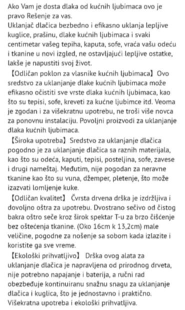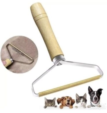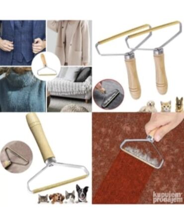 - Praktičan alat sa drvenom ručkom i metalnim trouglastim okvirom sa zupčastom/žičanom ivicom za efikasno skupljanje dlačica, prašine i pilling kuglica.