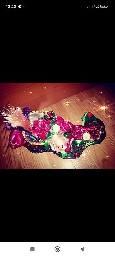 - Osnova: ukrašeno postolje sa efektom cipeliće/patuljaste cipele, presvučeno satenskim trakama u crnoj, zelenoj i bordo boji, naglašeno zlatnim kordonom