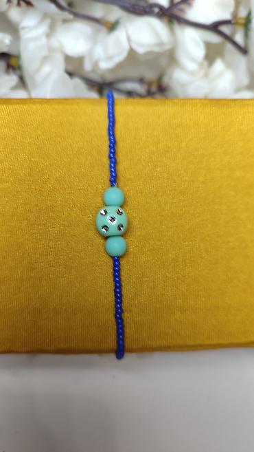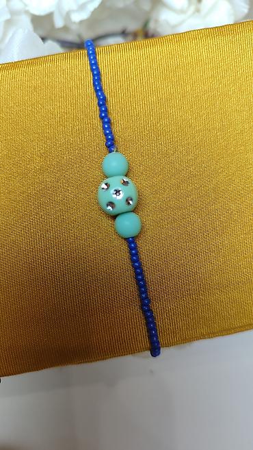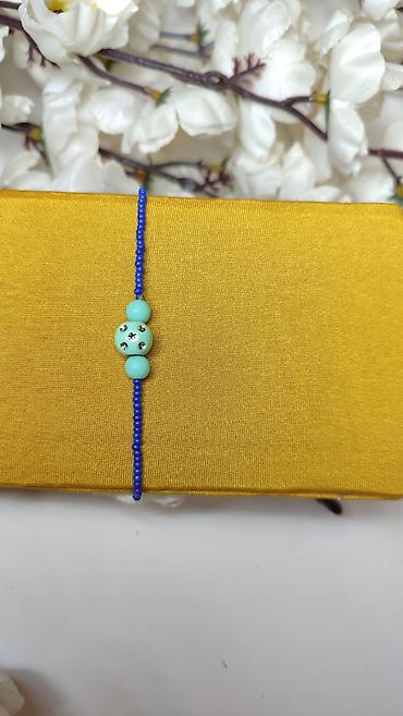- Tanka narukvica od sitnih staklenih perlica u kraljevsko plavoj boji.