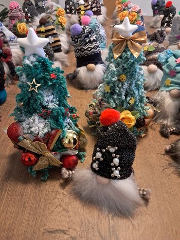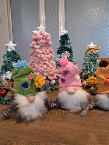 Set figuraRučno rađene novogodišnje dekoracije – skandinavski patuljci (gnome) i mini jelke.