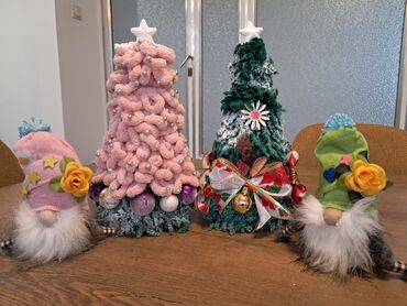 - Mini jelke od mekanog konca/ćebića i tekstila, ukrašene perlicama, zvezdama, kuglicama i mašnama; dostupne u više boja (zelena, svetloružičasta i dr.), sa vršnim zvezdama.