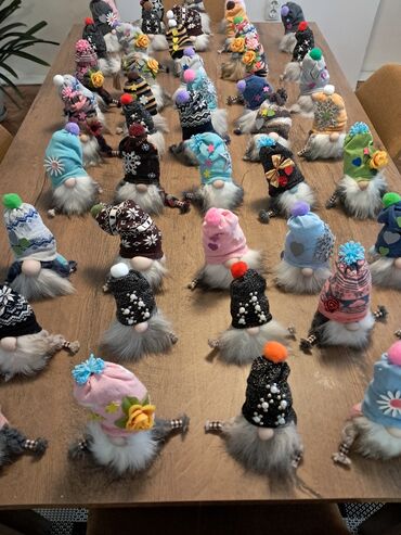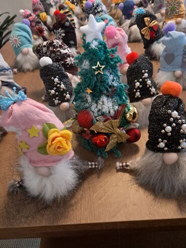 - Unikatni patuljci sa mekanim bradicama, plišanih kapa i razigranih detalja: pomponi, perlice, mašnice, cvetići, srca, zvezdice. Svaki komad je drugačiji po boji i ukrasima.