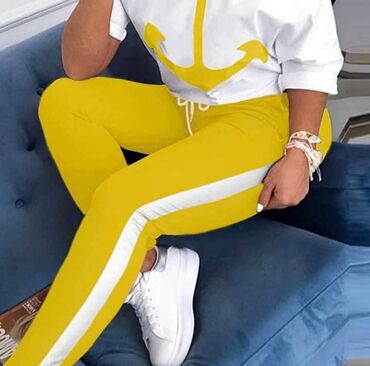 Ženski sportski komplet – majica i donji deo trenerke - Dvodijelni set: bela majica sa velikim printom NIKE na prednjoj strani i usklađene trenerke. - Trenerke sa elastičnim pojasom i učkurima za...