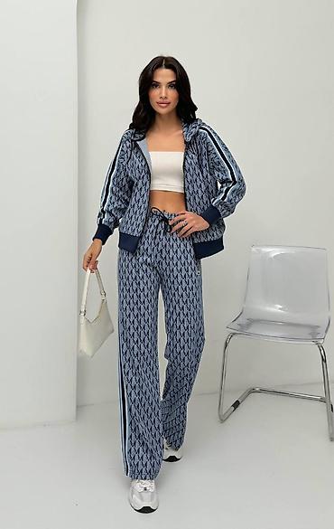 Ženski sportski komplet – trenerka sa kapuljačom i donjim delom - Dizajn: dvodelni set (gornji deo sa rajsferšlusom i kapuljačom + donji deo sa uskim nogavicama). Prepoznatljiva chevron traka u pr...