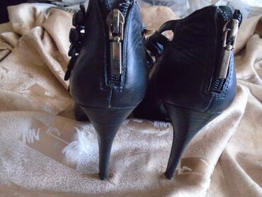 LetnjaCrne cipele 5th Avenue Izrađene su od prave kože. Jako lep model sa visokom štiklom od 12 cm i kaišićima koji se mogu prilagoditi širini stopala. Zakopčavaju se na cibzar pozadi. Dva puta obuvene, broj 38.