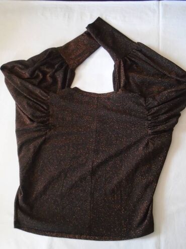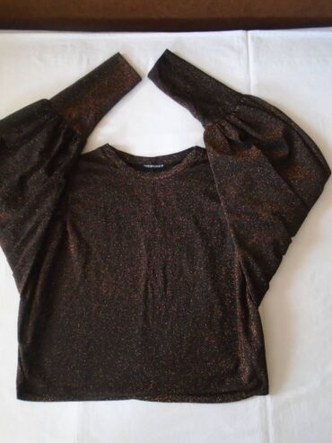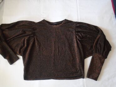 Terranova svetlucava bluzica sa zanimljivim rukavima M veličine. Komotnija je i tegli se, kao duži crop a na donjem rubu je poluobim bez rastezanja oko 47 cm.