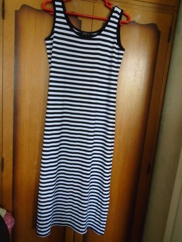 Nova tegljiva haljina na prugice sa razrezima sa ove strane radi lakšeg hodanja, S veličine.