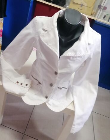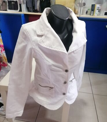 Ocuvan sako jaknica od gospodje sudije koja preko mene nosi nagomilane stvari. Ne kopca se, zato se i nosi i kao jaknica. Broj je 40. Lep i prjatan. Mogu vam poslati kao cc paket pa je postarina 34...