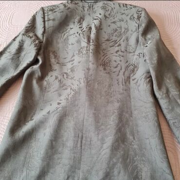 Ženski sako LARS VALLIN - Elegantni strukirani kroj sa reverima, dužina do ispod kukova - Tkanina sa reljefnim, geometrijskim uzorkom u sivo‑srebrnim tonovima sa diskretnim metalik odsjajem - Dvor...