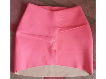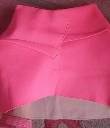 Salon dress suknja roze ciklama boje od neoprena. Piše s ali manja. Po meni oko 12-14 godina ili xs - xxs. Meni mala. Materijal puniji kao neopren. Uska, kratka, jako lepa. Nova