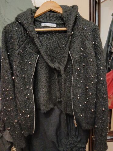 Na kopčanjeZara novi dzemper u broju s/m sa kapuljacom i biserima u boji srebra...