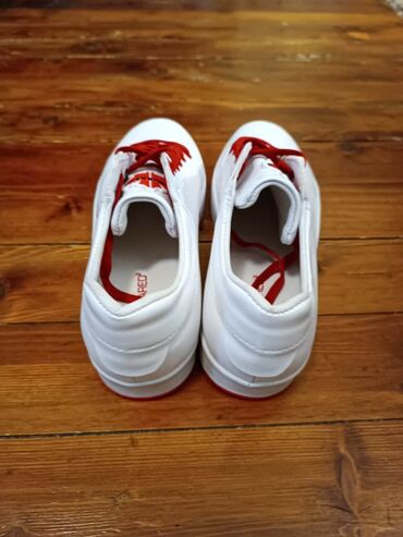 Sportske patike – bele - Model: niske patike sa klasičnim pertlanjem - Dizajn: čista bela boja sa kontrastnim crnim logotipom sa strane i na jeziku - Gornjište: glatka sintetička koža sa perforaci...