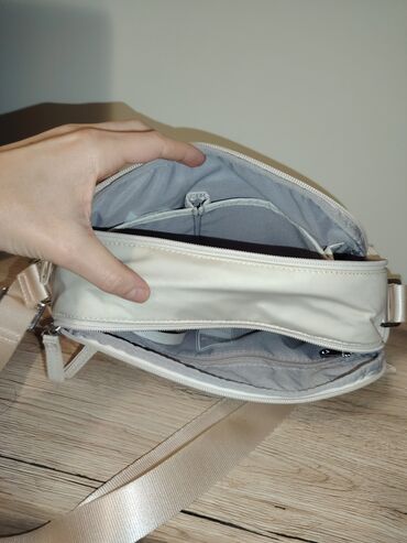 Praktična, lagana i organizovana torba za dokumenta, telefon, novčanik, kozmetiku i putne potrepštine. Neutralna bež nijansa lako se kombinuje uz različite stilove.