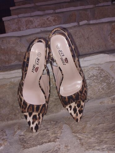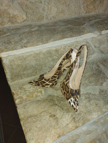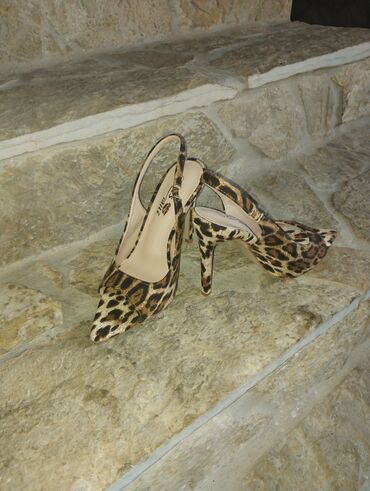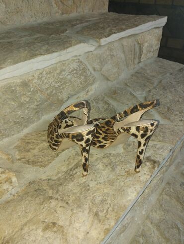 Ženske sandale na štiklu – zebra print - Brend: Hevani (logo na ulošku) - Materijal: prirodna koža (oznaka “VERA PELLE” na ulošku) - Model: otvoreni prsti, zatvorena peta sa kaišem oko zgloba i me...
