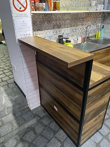 Barski sto – Pluton Metal - Kompaktan pravougaoni barski sto sa radnom pločom u dezenu svetlog hrasta. - Metalna konstrukcija u beloj boji, sa ukrštenim ojačanjima za stabilnost. visina 92, tabla...