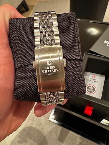 - Kućište i narukvica od nerđajućeg čelika; preklopna kopča sa gravurom Swiss Military by Chrono