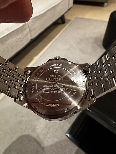 - Navojni poklopac kućišta sa oznakama: Swiss Made, Stainless Steel, Sapphire Crystal, Water Resistant 100M, Official Licensed Product of the Swiss Confederation