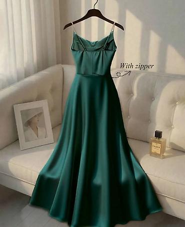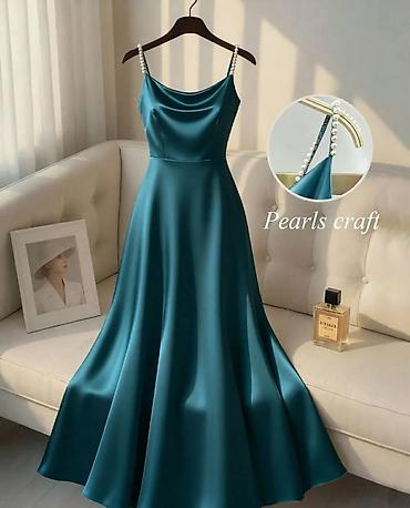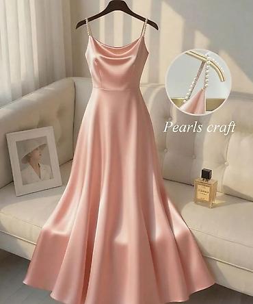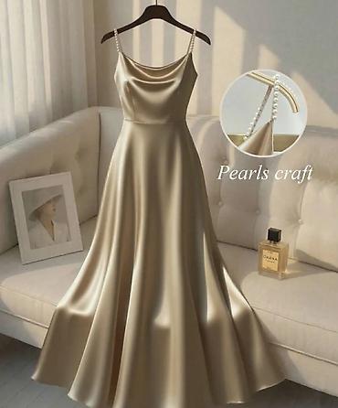 Saten haljina na bretele sa biserima - Model: duga, lepršava A-kroja