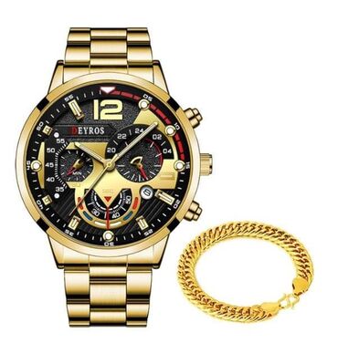 Muški poklon set – više varijanti Sadržaj seta: - Ručni sat (kvartz mehanizam) sa metalnom/kožnom narukvicom, veliki čitljiv brojčanik - Kožni novčanik u boji crne, sa utisnutim logom ili prugasti...