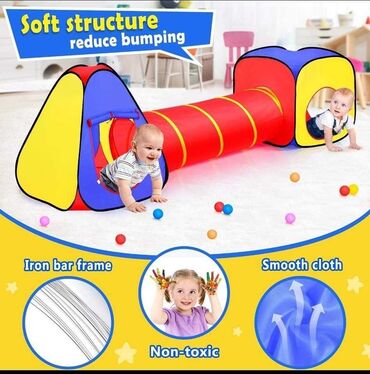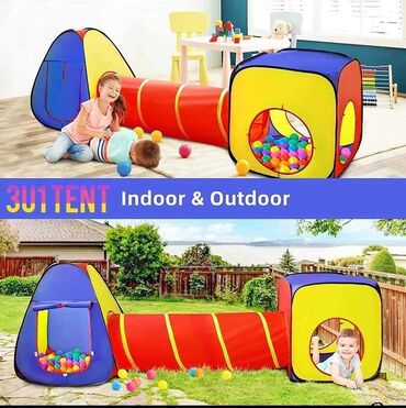 Ovaj 3 u 1 šator tunel za igru je savršen! Ovde se mogu igrati, skakati, puzati, po želji u kom delu šatora oni žele. Sastoji se iz dva šatora, piramidalnog i kockastog, i jednog tunela, koji ih spaja. Privatni i odvojeni prostori sa dva različita igrališta, zabavljajuće ih satima. Materijali su posebno odabrani da zaštite sigurnost mališana, da garantuju optimalnu ventilaciju i da vam omoguće da nadgledate svoje dete tokom vremena igre. A kada dođe vreme za spavanje, samo je sklopite i stavite je na svoje mesto. Zauzima vrlo malo prostora! Dolazi u sopstvenoj torbici, lako ga je spakovati i poneti sa sobom, jer spakovan zauzima vrlo malo prostora, pa ni odlaganje ne predstavlja problem. Preporučena starost: 3+ godine. Karakteristike: - 3 u 1 šator za igru, pojedinačni delovi (kocka, piramida i tunel) se mogu koristiti zasebno- Zaštićeni prostor gde se deca mogu igrati- Nije potrebna posebna montaža- Zahvaljujući pop-up sistemu možete lako sklopiti šator- Pristupna vrata sa roletnama- Lagan i lak za kretanje, napolju i unutra- Savršen poklon za svaku priliku