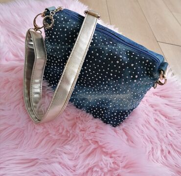 Elegantna večernja torbica sa lancem - Materijal: mekani baršun u tamnoplavoj boji, gornji rub od glatke eko kože - Zatvaranje: metalni rajsferšlus u zlatnoj boji - Kaiš: dekorativni zlatni lanac,...