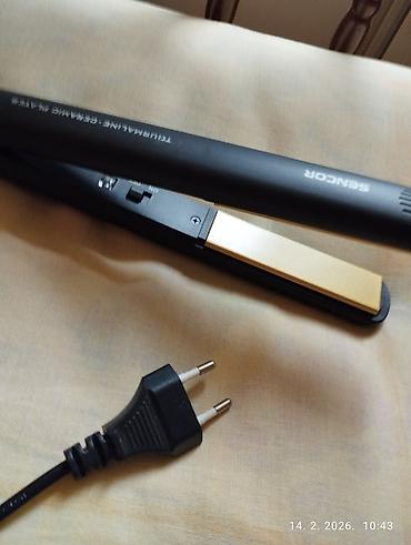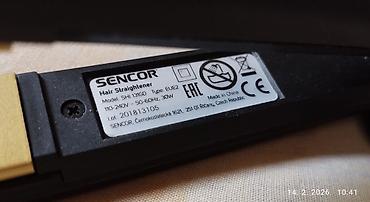 Idealno za svakodnevno ispravljanje i stilizovanje svih tipova kose kod kuće ili na putu. Na kućištu je označeno: TURMALINE-CERAMIC SHI 1313 i SENCOR. Datumski žig na fotografiji: 14. 2. 2026.