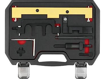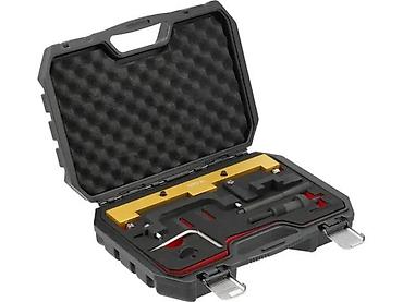 Set alata za blokadu i centriranje razvodnog sistema (BMW/Mini – N47/N57/N13, moguće i drugi motori po rasporedu). Komplet u koferu sa precizno oblikovanom penastom postavom i metalnim bravicama.